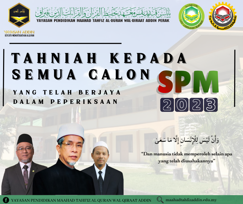 Yayasan ADDIN merakamkan setinggi-tinggi ucapan tahniah dan syabas atas kejayaan pelajar-pelajar dalam Peperiksaan Sijil Pelajaran Malaysia 2023. Tahniah juga buat ibu bapa dan guru-guru yang sentiasa memberikan yang terbaik demi kejayaan anak-anak.