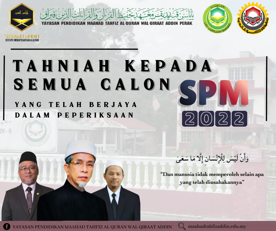 Yayasan ADDIN merakamkan setinggi-tinggi ucapan tahniah dan syabas atas kejayaan pelajar-pelajar dalam Peperiksaan Sijil Pelajaran Malaysia 2022. Tahniah juga buat ibu bapa dan guru-guru yang sentiasa memberikan yang terbaik demi kejayaan anak-anak.