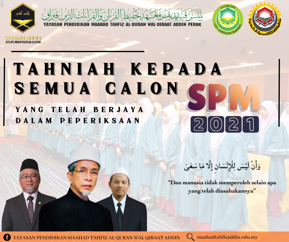 Yayasan ADDIN merakamkan setinggi-tinggi ucapan tahniah dan syabas atas kejayaan pelajar-pelajar dalam Peperiksaan Sijil Pelajaran Malaysia 2021. Tahniah juga buat ibu bapa dan guru-guru yang sentiasa memberikan yang terbaik demi kejayaan anak-anak.