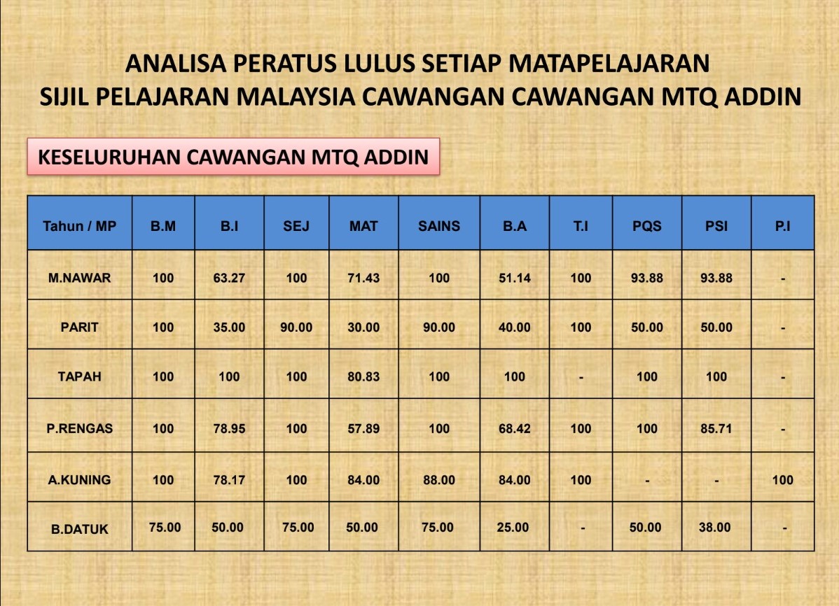 Dimaklumkan bahawa Analisa SPM Cawangan MTQ ADDIN 2021, telah pun siap dan sedia untuk rujukan. Bagi siapa yang ingin mendapatkan laporan penuh tersebut boleh ambil melalui link di bawah yang telah di sediakan.